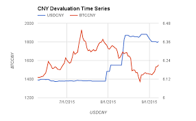 Browse other questions tagged exchanges or ask your own question.The PBOC shocked the world this summer with a 4% devaluation of the CNY.What was the effect on Bitcoin if any, due to their actions?The above chart is a time series from early June until early September of USDCNY and BTCCNY (OKCoin.cn).The USDCNY rate was stable up until the beginning of August when the devaluation began.After the devaluation began, it appears that the two exchange rates were negatively correlated.Traditional economic thinking would suggest that a weaker currency would lead to a higher BTCCNY rate.I then calculated the correlation from Aug 30th to September 8th between the two rates.It came to -0.779.A correlation of 1.00 means the two rates move in the same direction and magnitude, and a correlation of -1.00 would means the two rates move in the opposite direction but same magnitude.The observed -0.779 correlation is a relatively strong negative correlation, meaning as CNY weakened and USDCNY moved higher, and the BTCCNY rate moved lower.